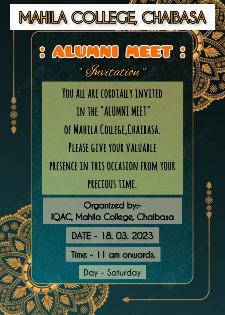 You are cordially invited to the Grand Alumni Meet when we shall relive the golden moments. Do forward this invite to all your friends who were alumnis of the same