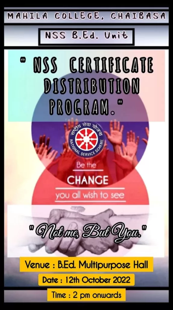महिला कॉलेज चाईबासा, राष्ट्रीय सेवा योजना की ओर से दिनांक 25 जनवरी 2023 को राष्ट्रीय मतदाता दिवस के अवसर पर शपथ लिया गया। शपथ का प्रारूप ‘हम, भारत के नागरिक […]